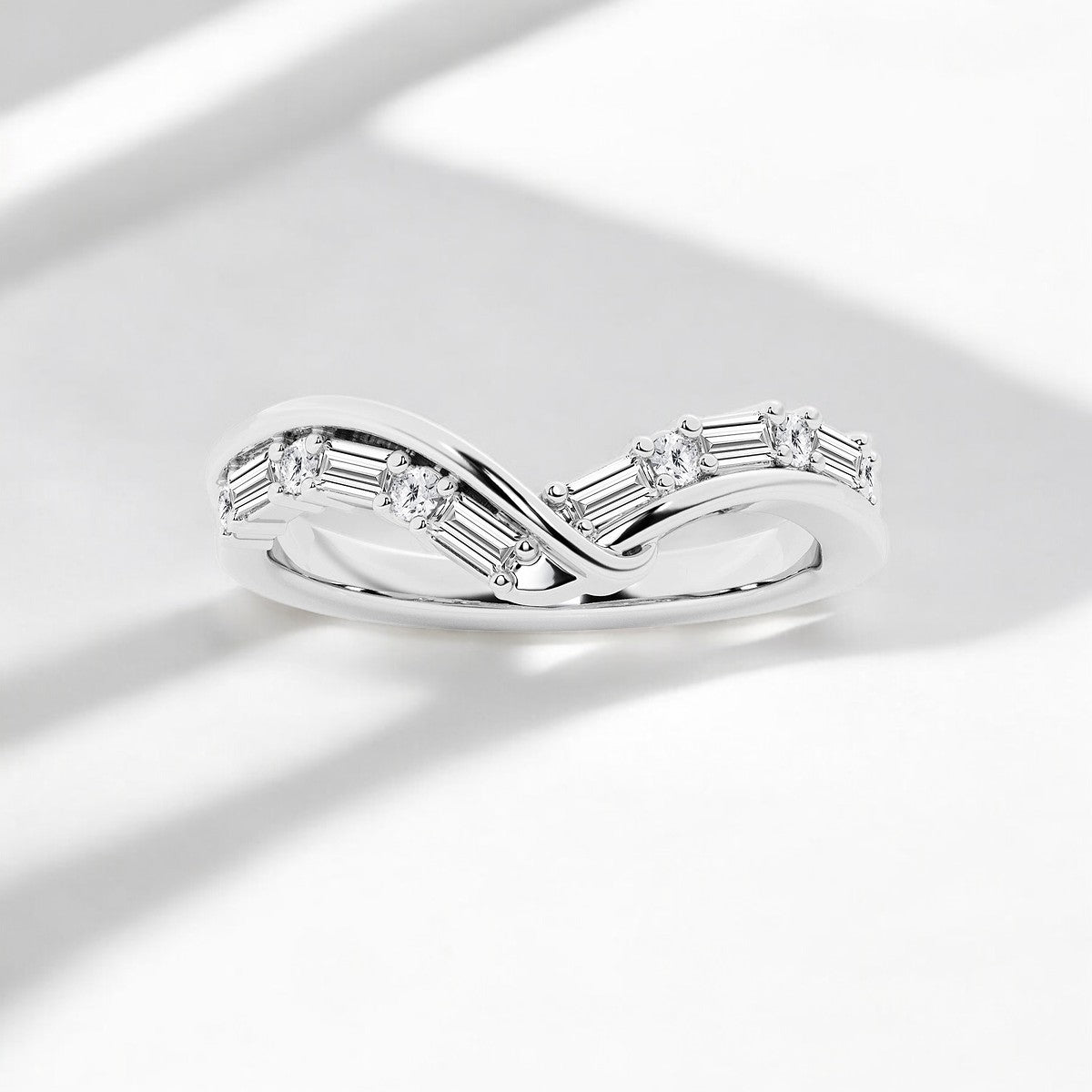 Round and Baguette Lab Grown Diamond Chevron Fashion Band